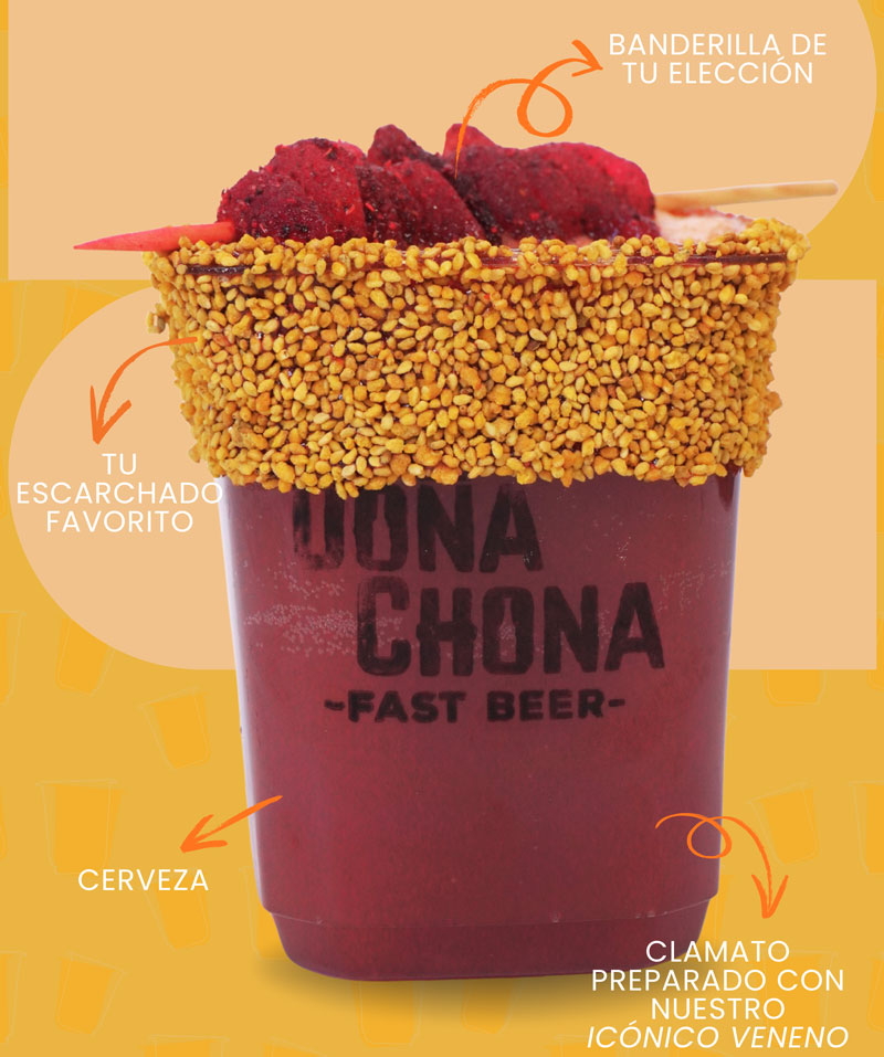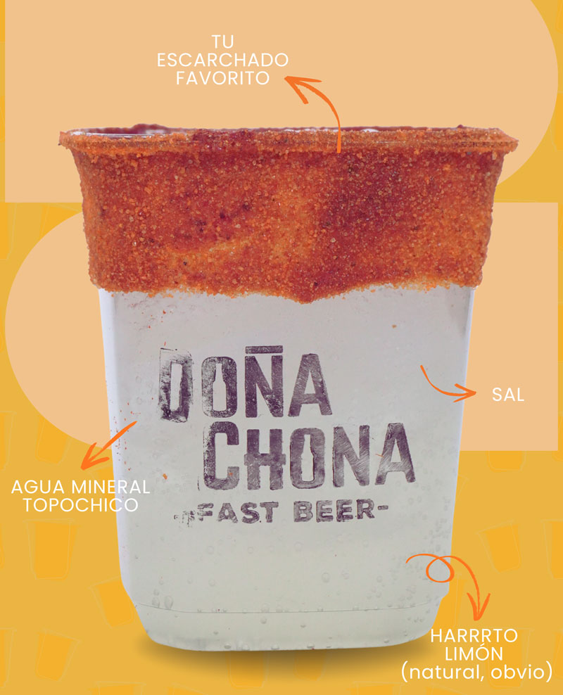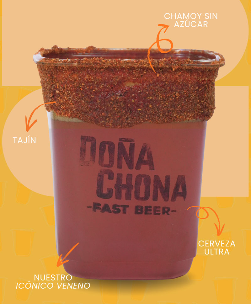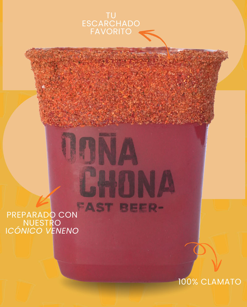 Doña Chona –FAST BEER– es un concepto de micheladas para llevar que nace de una idea muy clara: llevar la experiencia de una michelada “con todo” a un nivel más limpio, mejor planeado, más estético y totalmente confiable, sin perder lo rico, lo atrevido y lo divertido de una buena chela preparada.