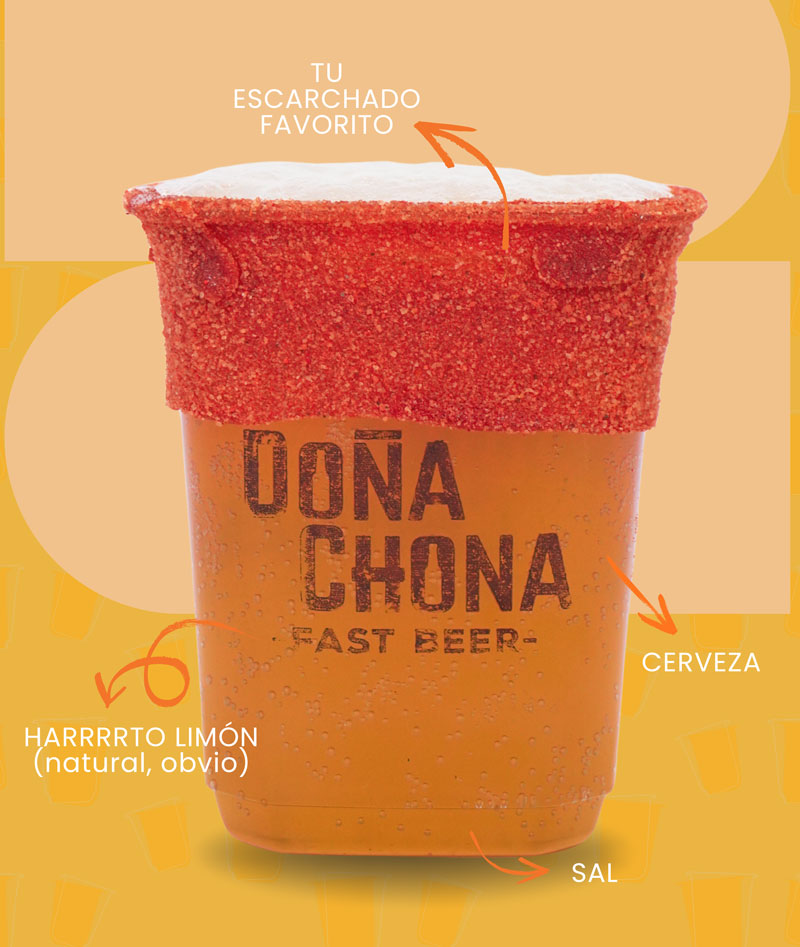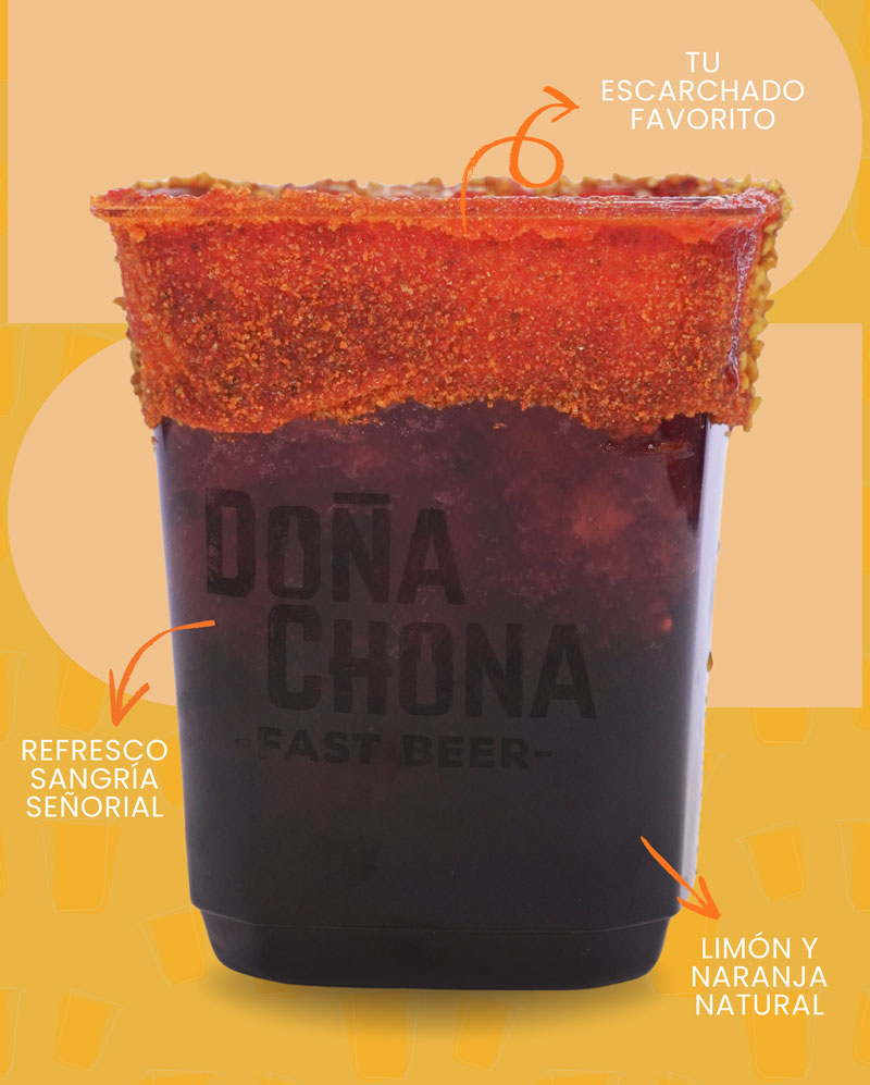 Doña Chona –FAST BEER– es un concepto de micheladas para llevar que nace de una idea muy clara: llevar la experiencia de una michelada “con todo” a un nivel más limpio, mejor planeado, más estético y totalmente confiable, sin perder lo rico, lo atrevido y lo divertido de una buena chela preparada.
